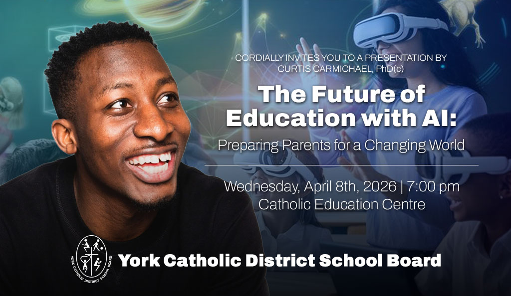 The York Catholic Parent Involvement Committee (YCPIC) invites the York Catholic community to learn more about the future of AI in education through an interactive training session on Wednesday, April 8, 2026 from 7-9 p.m. at the Catholic Education Centre (320 Bloomington Road, Aurora).